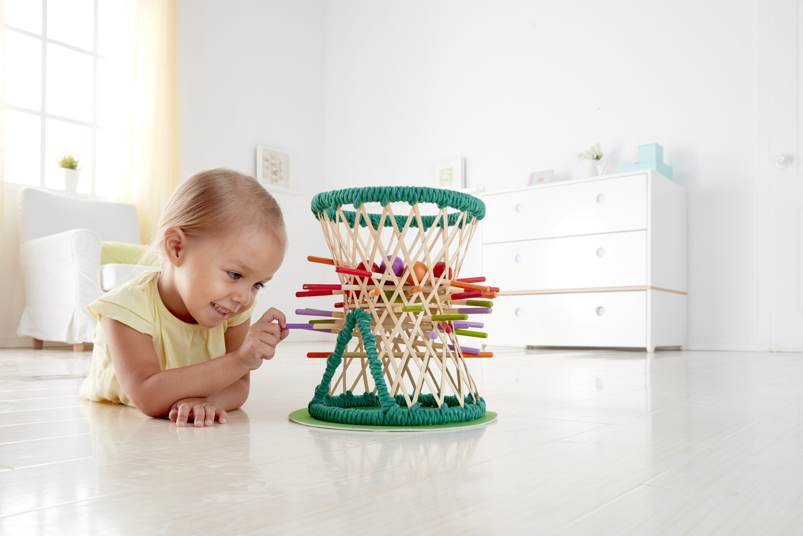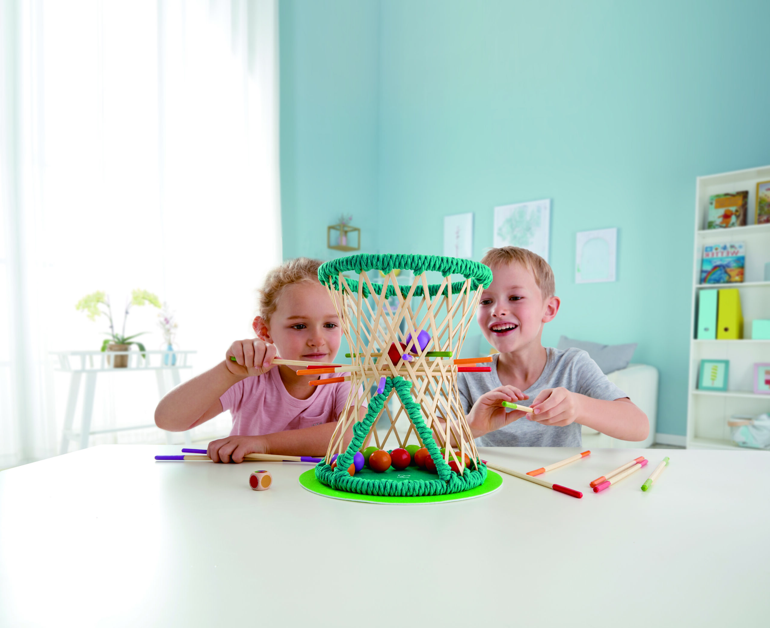 En este entretenido juego de habilidad, a cada jugador se le asigna un color y, por turnos, debe ir extrayendo sus palitos de la cesta con la suficiente maña como para que no caiga ninguna de sus bolas al fondo.